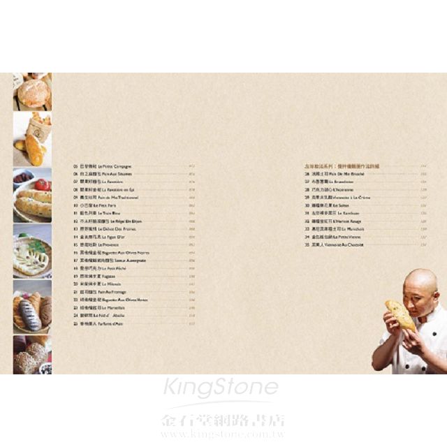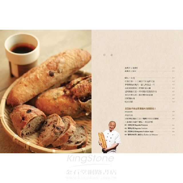 這套「法國傳統麵包工法」強調原味、無添加,甚至不加入任何油或糖等,只以純正天然的法國麵粉、水、天然酵母及粗鹽,經過多道親手揉製、及長時間發酵 的過程,才烘焙出的法國麵包,口感完全不同於日式麵包的鬆軟、及德式麵包的硬實,是一種表皮香脆有勁、內裡濕潤軟Q,充滿了嚼勁,且會傳來原味麥香的回甘口感。