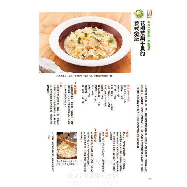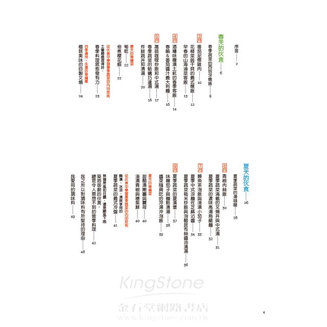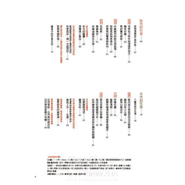 「依照四季編排,以蔬菜為主角穿插當令的魚、肉,這些為蔬果店員工烹調的伙食,充滿巧思、智慧與創意,不僅簡單好上手,成品看起來更是好吃極了!我一邊閱讀一邊躍躍欲試,同時也體會到,不時不食並非高深的理念,而是得以日日實踐的美味慣常。」──Liz高琹雯(美食作家)