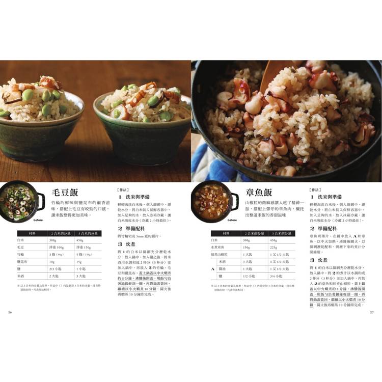 ★食譜中列出2合~3合的份量,對應最常見的Staub鍋具型號:Pico Cocotte 16~22cm、Braiser 24cm均可使用。