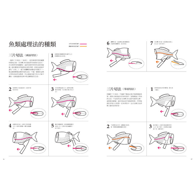 全書以「步驟拆解+圖解對照」為主軸,呈現每一個動作的重點與判斷依據。透過對「為何這樣處理」的完整說明,讀者不僅能學習單一技巧,更能理解背後的邏輯、將相同手法靈活應用至不同魚種,真正達到「知其然,亦知其所以然」的專業技巧模仿。