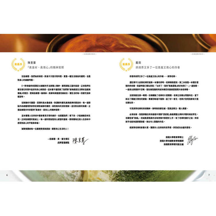 就像我常在課堂上說的:「做蛋糕,不是為了讓別人羨慕,而是為了讓身邊的人微笑。」謝謝你們一直以來的支持與鼓勵,願意和我一齊,把日子烤得甜甜的、香香的,帶著一點黏牙的幸福感,久久回味。願這本書,能在某個平凡午後,陪你做出一塊不平凡的蛋糕,也讓你的生活,因為一點點烘焙,而更加溫柔與美好。