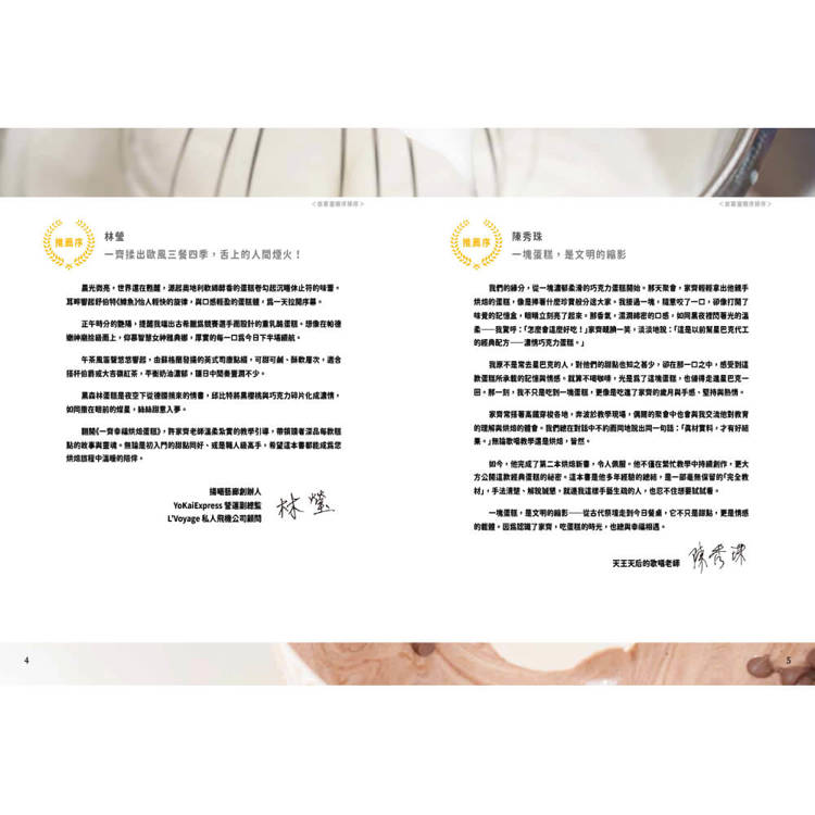 翻開《一齊幸福烘焙蛋糕》,許家齊老師溫柔紮實的教學引導,帶領讀者深品每款糕點的故事與靈魂。無論是初入門的甜點同好、或是職人級高手,希望這本書都能成為您烘焙旅程中溫暖的陪伴。