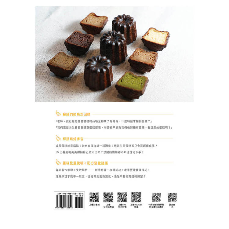 「配方變化建議」,甚至還揭露了我曾為貴婦百貨打造的熱銷商品背後的小心機與技巧。無論你是剛進入烘焙世界的新手,還是尋求突破的進階者,都能在這本書中找到屬於你的靈感與成就感。