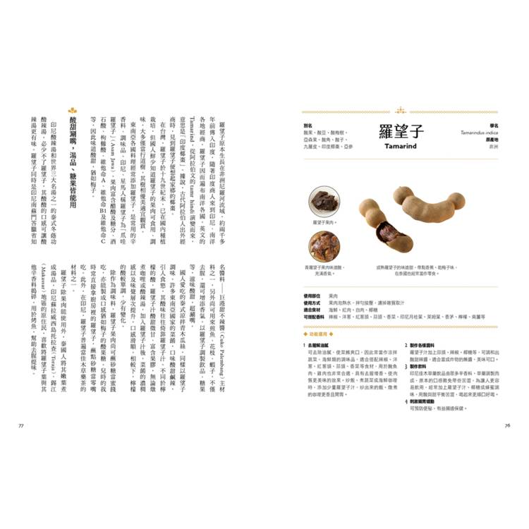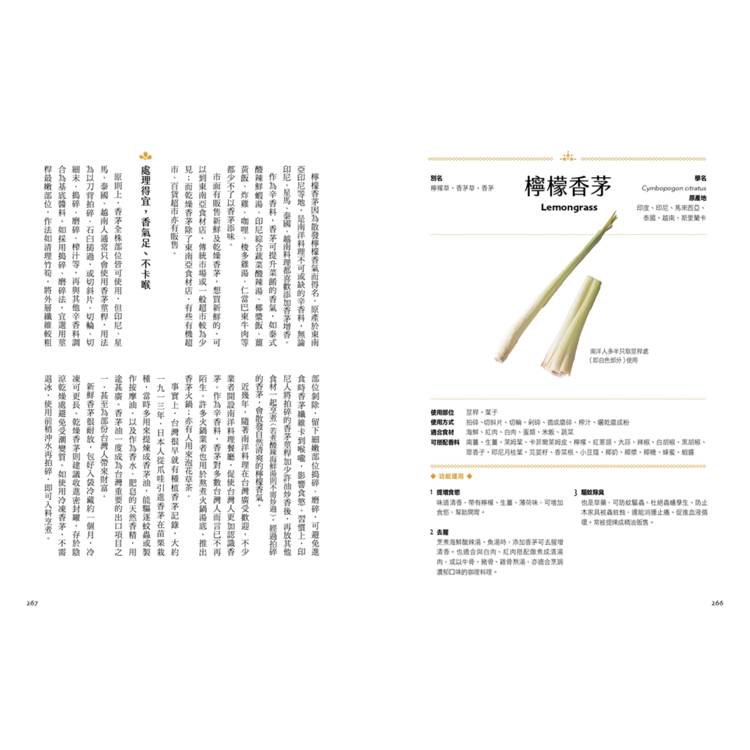 本書以「酸、甜、苦、辣、鹹、鮮、香、酥」八大風味元素切入,完整剖析45種南洋香料的風味、搭配與文化背景,並提供各種辛香料的妙用小技巧。