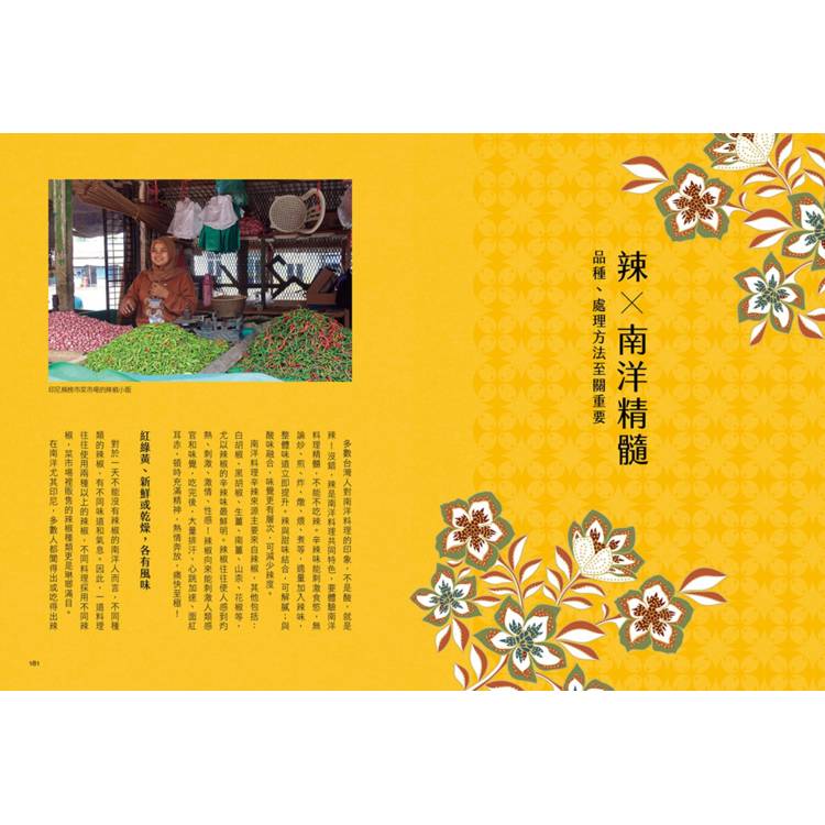 這本書彷彿是為味蕾精心設計的旅遊地圖,深入走進東南亞飲食風景,不僅是文化的探訪,更是一場辛香料巡禮。翻閱之間,彷彿在市集裡嗅到香料的流動氣息,領略酸、甜、苦、辣、鹹、鮮、香、酥等風味,透過層次堆疊,讓人明白南洋飲食的豐饒與變化。這場不必搭機的旅程,足以令人心生雀躍。
