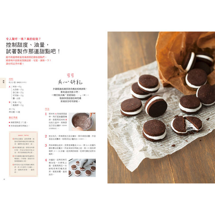 目標就是一想到就能馬上動手做,不會有剩餘材料,也不會有過量的問題,對於分切的大小也特別講究。就算沒有烤箱,也可以用微波爐或烤麵包機製作。