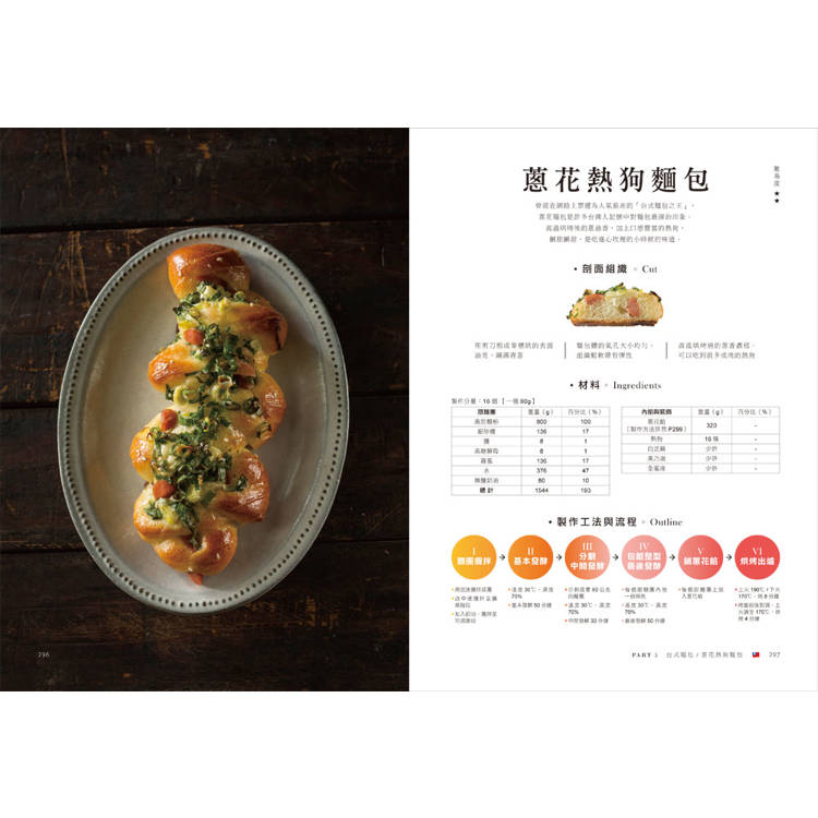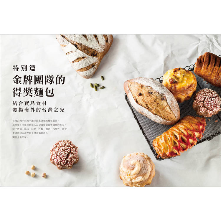 書中特別收錄7款開平團隊在國家賽事中的得獎麵包配方。例如,以關廟鳳梨和百香果,做成台灣口味的丹麥麵包;將芒果與荔枝濃縮在柔軟的布里歐中,做出極上的口感和香氣。實際示範如何將在地食材結合歐洲麵包技術,創造出獨一無二的風味與層次。