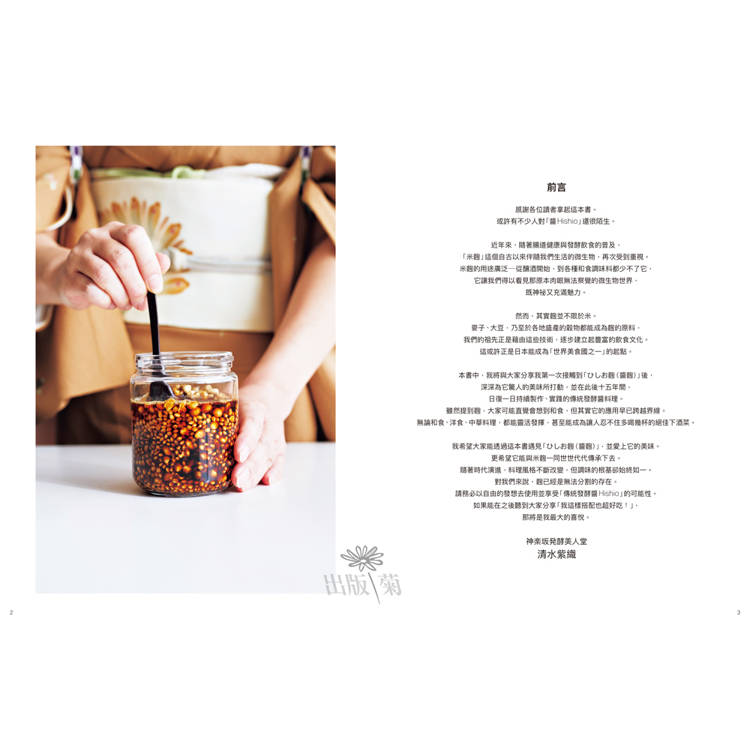 「醬」在日文讀做Hishio,泛指以麴發酵製成的調味品,近年來,隨著腸道健康與發酵飲食的普及,「麴」這個自古以來伴隨我們生活的微生物,再次受到重視。麴的用途廣泛—從米麴釀酒開始,到各種和食調味料都少不了,它讓我們得以看見那原本肉眼無法察覺的微生物世界,既神祕又充滿魅力。麴並不限於米,麥子、大豆,乃至於各地盛產的穀物都能成為麴的原料,它的應用也早已跨越界線,無論和食、洋食、中華料理,都能靈活發揮,甚至成為讓人忍不住多喝幾杯的絕佳下酒菜。