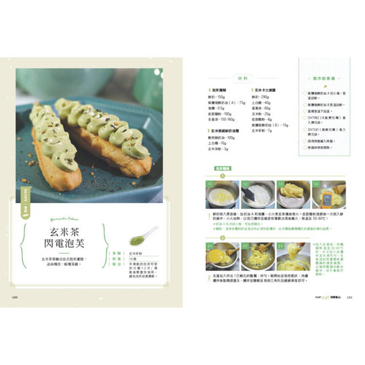 ✦ 玄米茶閃電泡芙:玄米茶香與卡士達醬交織,演繹法式甜點的清新優雅。