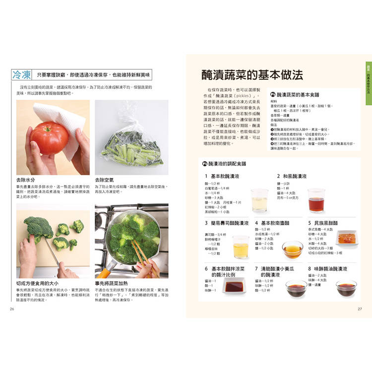 並附有醃漬蔬菜的作法教學,8種醃漬醋汁、16種肉類沾醬,讓你自由選擇喜愛的口味。