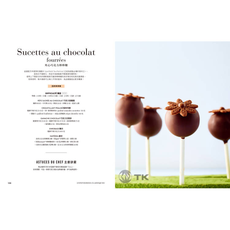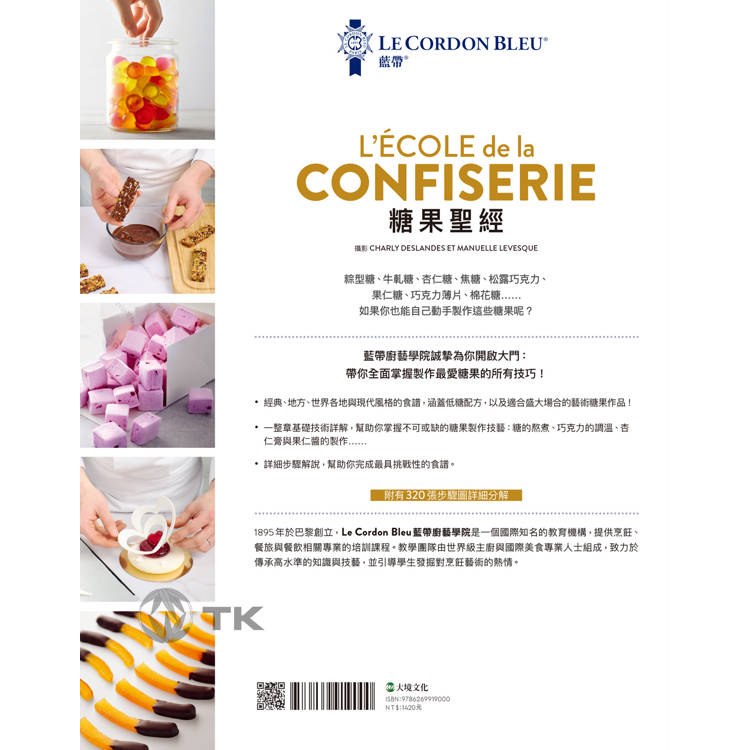 本書中,法國藍帶廚藝學院的主廚們為我們獨家呈現90道附有完整步驟圖的糖果食譜祕訣,包含從最簡單到進階的配方,以及20種不容錯過的基礎製作手法。收錄了兼具經典與現代的各種糖果,涵蓋低糖配方,每道配方都搭配詳盡的步驟圖與仔細的過程說明、操作手法,更附上提供指導的ASTUCE DU CHEF主廚訣竅。讓讀者更容易理解,製作不失敗。