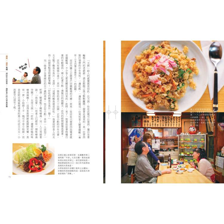 剛到日本時,不論是大眾食堂或是普通人家的餐桌,都讓我大吃一驚。因為餐點十分的國際化,如同萬國餐點般,有中國菜的回鍋肉、青椒炒肉絲、滷肉,或是西餐的牛排、漢堡、義大利麵等。正如書中蒐集的庶民菜色,有不少是源自國外,雖然多少已日本化,但仍保留多元的飲食文化。沒有不必要的成規,也不會為了追求過剩的細膩而浪費,幾乎運用食材的所有部位,反而具有濃厚原味。因此,像現在許多京都的星級料理店,反而前往考察保留更多食材原味的大眾食堂、或地方小店的做法,不再過度去蕪存菁。
