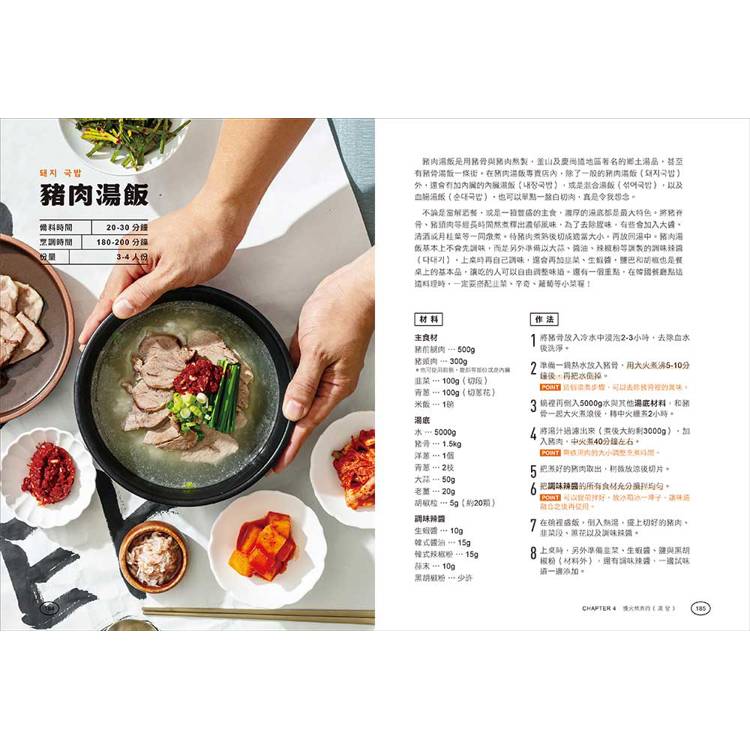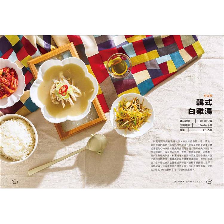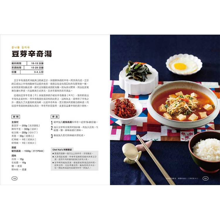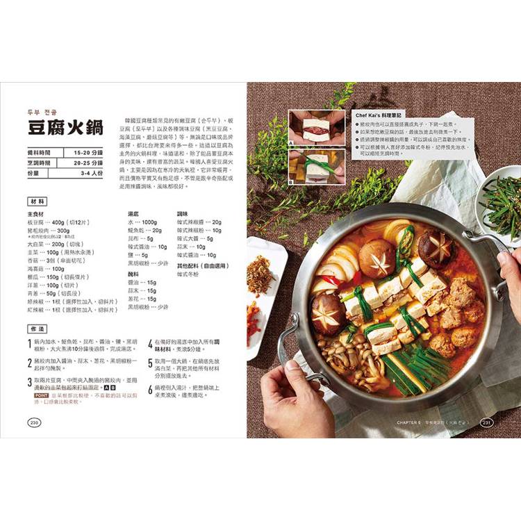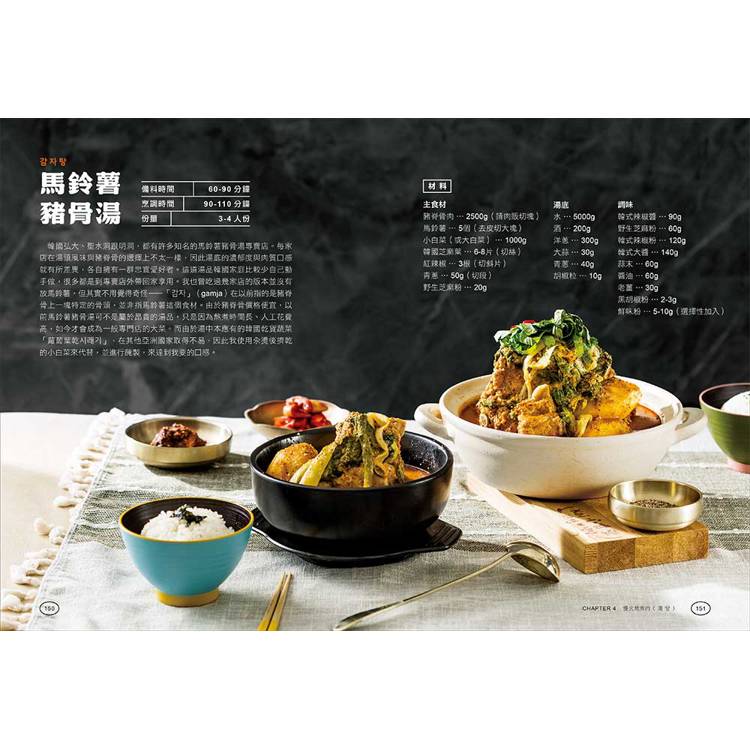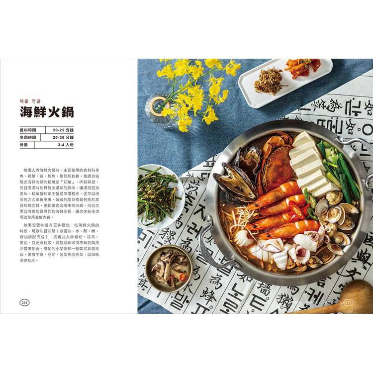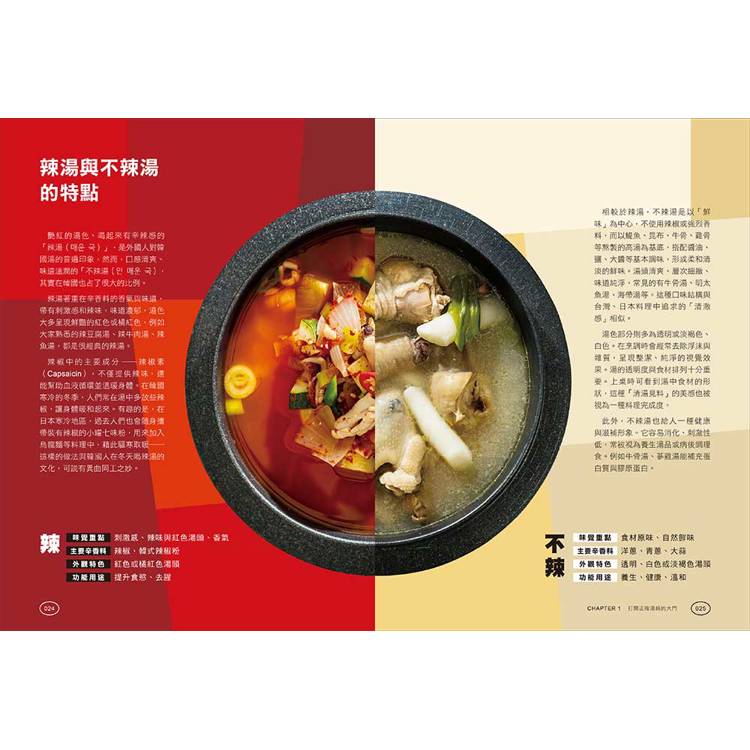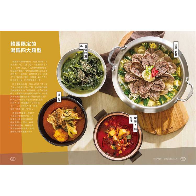 全書以「日常好湯(국)、湯(탕)、燉湯/鍋(찌개)、火鍋(전골)」四大韓湯類型為架構,
