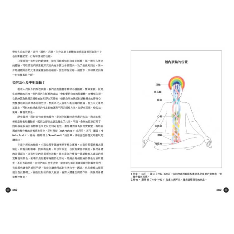 本書應該被視為一種引導,藉以激發你的好奇心、感官覺知和想像力,在此同時,也有助於您的脈輪能量平衡!