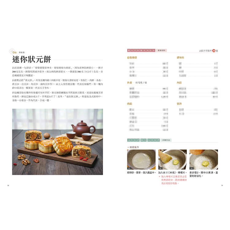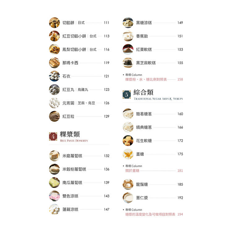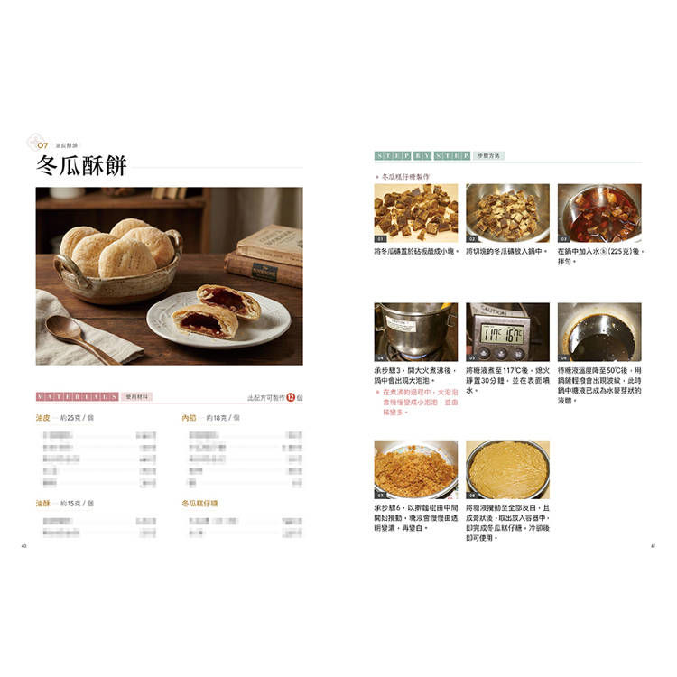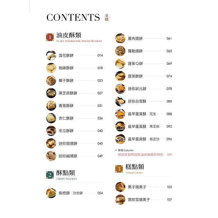 書中從「酥、糕、粿、糖」四大角度出發,整理油皮酥、糕點、粿漿、糖藝,每道品項皆搭配操作重點與判斷提示,建立清楚的學習脈絡。