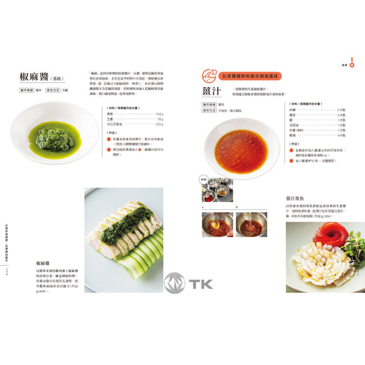 「以多種調味料組合創造風味」青花椒沙拉醬、香辣油、燻魚汁、皮蛋醬、鹹蛋汁、煳辣汁、香辛粉、金沙粉…等