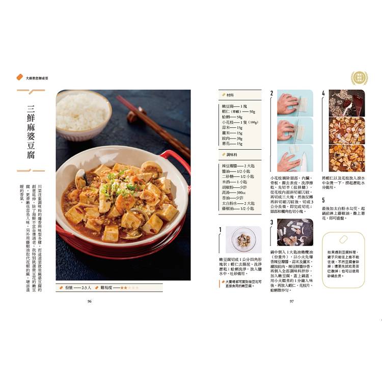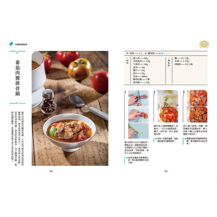 除了實際料理教學,本書亦從基礎出發,詳盡介紹食材選購、調味料運用、刀工技巧、火候控制等關鍵知識,幫助讀者建立正確的烹飪觀念。同時,書中分享多款高湯與萬用醬料製作方式,如牛骨高湯、XO醬與紅蔥酥等,讓料理層次更加提升,風味更加濃郁。