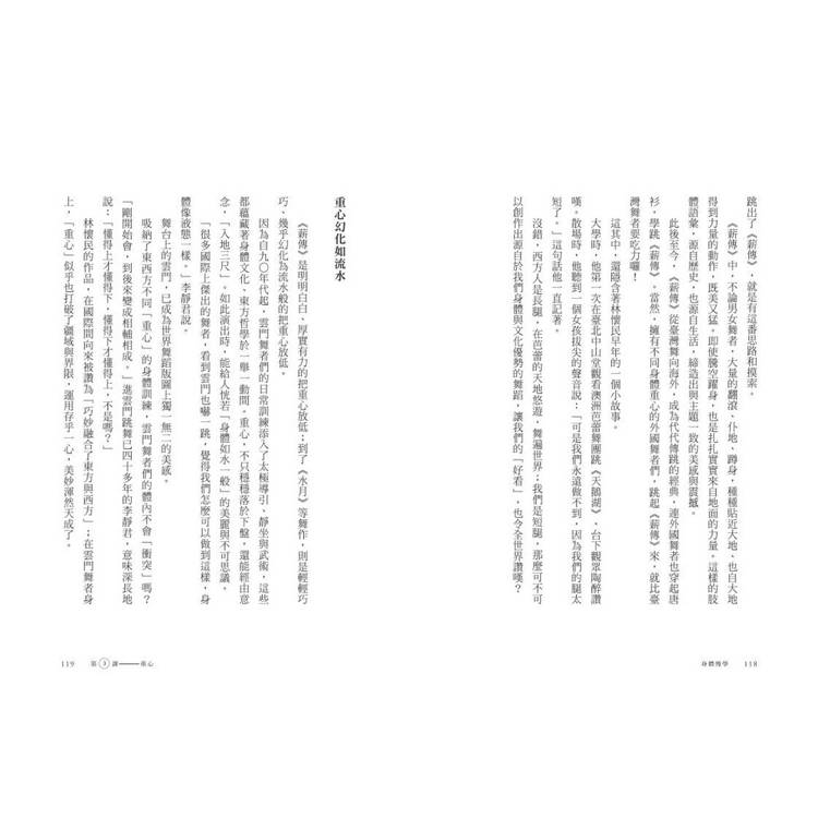 這些專題從雲門的本色──身體意識──出發,一來藉由身體能力的開發,扣緊教育信念;二來透過多種角度的映照呈現,讓讀者不只「知道」,而且能「感受」。
