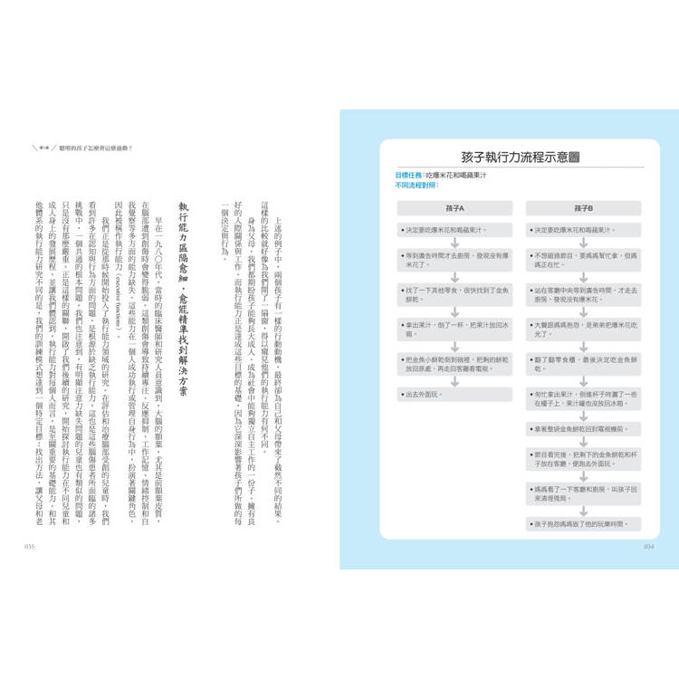上述的例子中,兩個孩子有一樣的行動動機,最終卻為自己和父母帶來了截然不同的結果。這樣的比較就好像為我們開了一扇窗,得以窺見他們的執行能力有何不同。