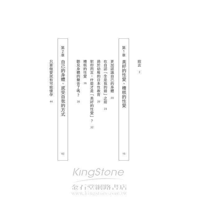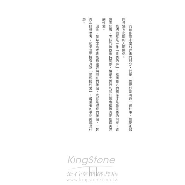 因此,我希望這本書能夠讓妳與現在的伴侶,或者是將來的伴侶,一起再次好好思考:如果想要擁有真正「愉悅的性愛」,最重要的事物到底是什麼。