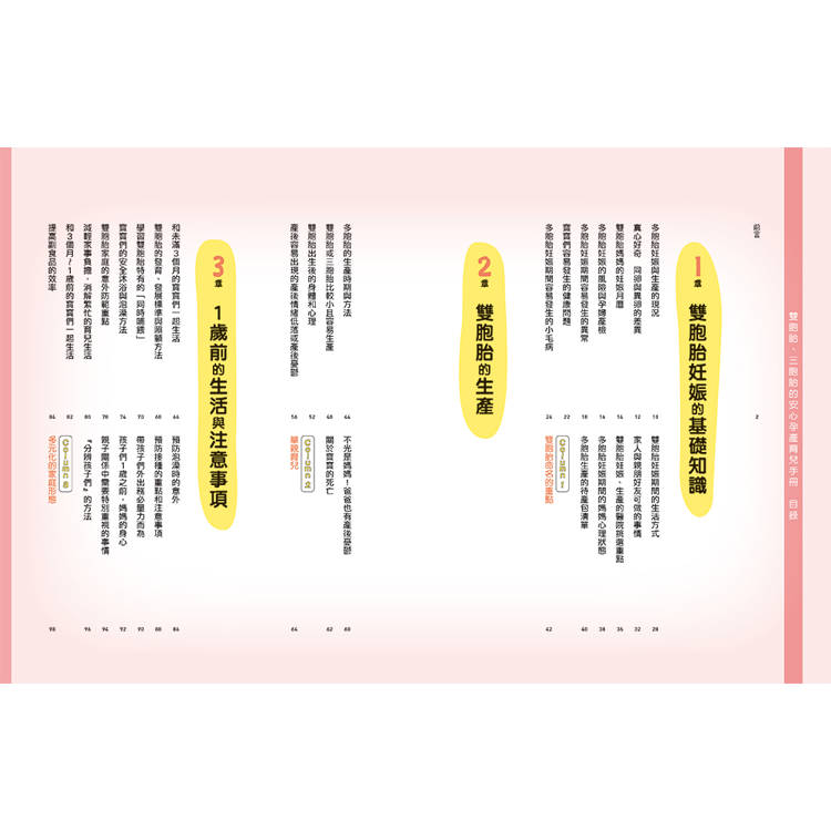 雙胞胎、三胞胎的安心孕產育兒手冊 目錄