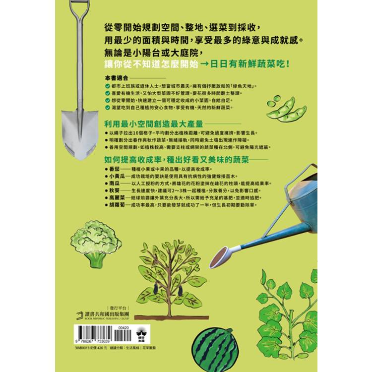 ‧利用最小空間創造最大產量,最適合家庭菜園的入門指南。