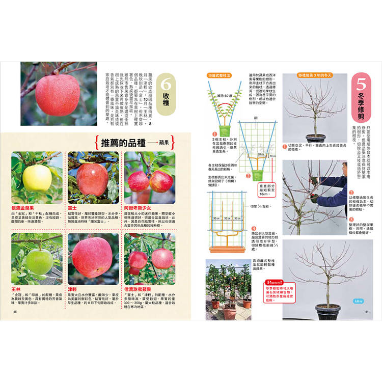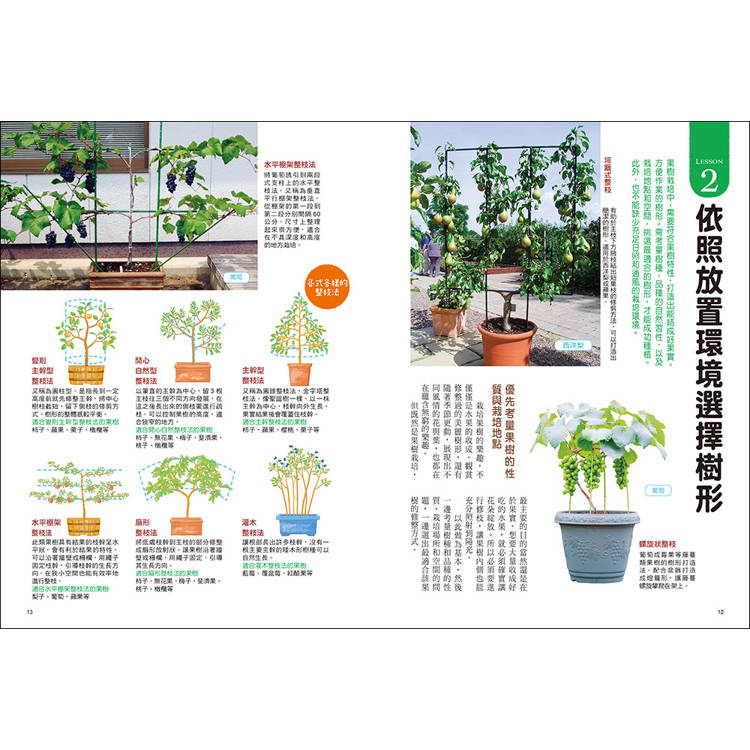 同時收錄扇形、主幹型、水平棚架、自然型等整枝方法,讓你種得好吃又種得漂亮!