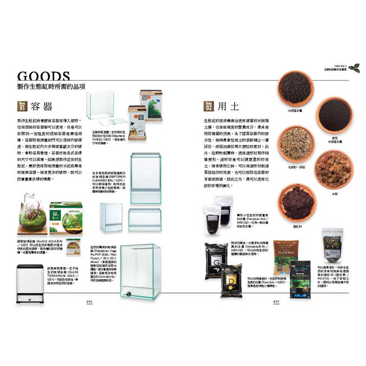除此之外,造景的素材與用具也介紹得相當齊全,無論是學習造景的初學者,或想讓自己的生態缸構圖更顯專業的玩家,都能輕鬆打造呈現瑰麗風景的生態缸,讓自然綠意在生活中綻放。