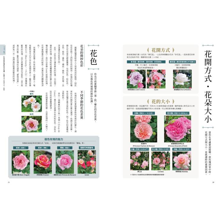 依玫瑰特性分類介紹86款品種,幫助讀者找到適合空間與個人喜好的玫瑰。
