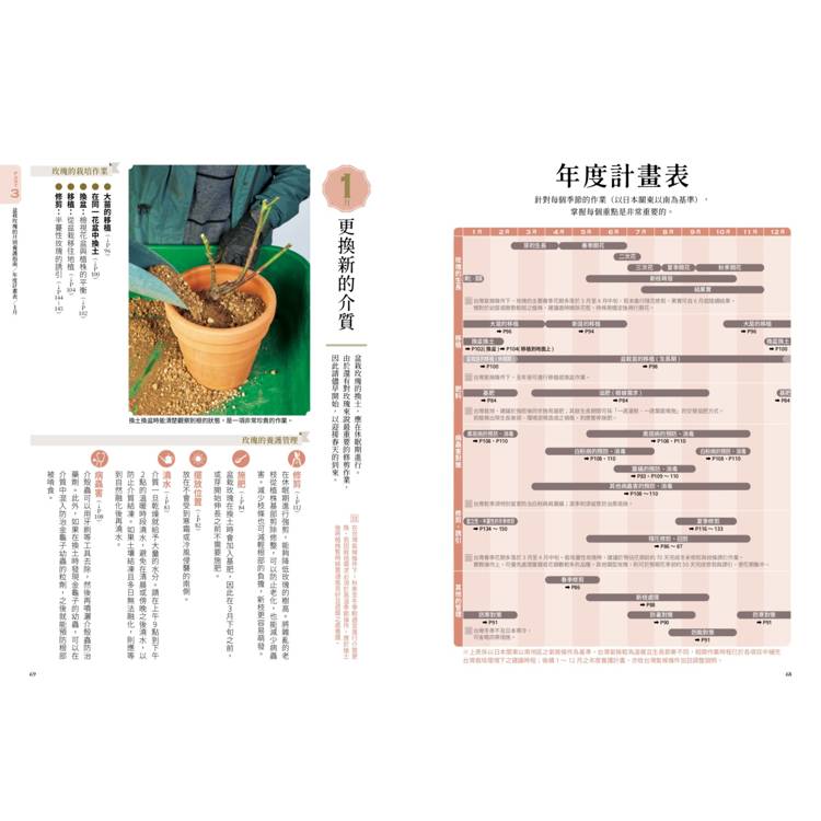 依月份整理1~12月玫瑰的栽培節奏,清楚掌握一年四季的管理重點。