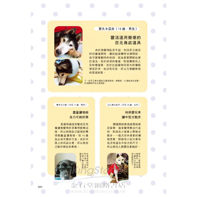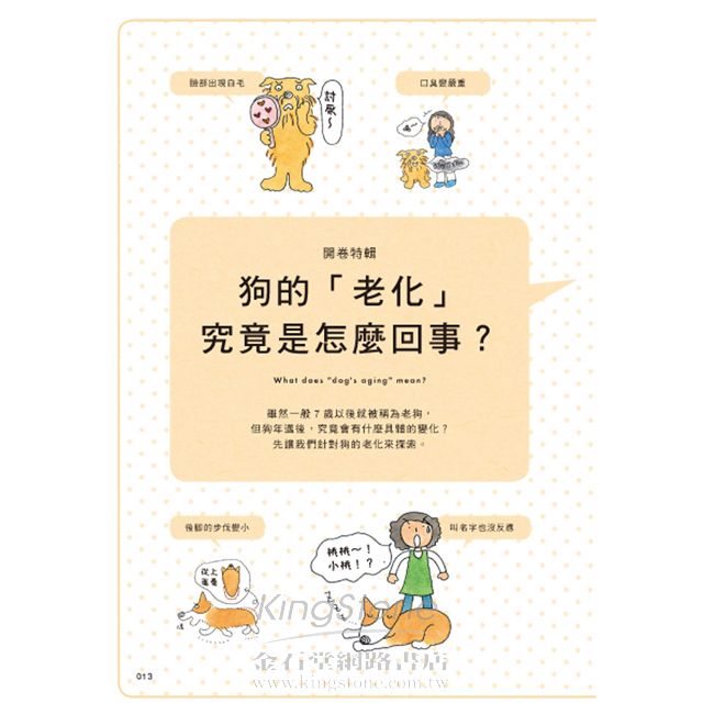 即使是曾經朝氣篷勃又活潑的愛犬也一定會逐漸年老。本書將愛犬邁年年老階段常見的情況和症狀一一剖析,讓飼主以高齡犬的角度重新檢視牠們的生活,學會如何用愛心照護愛犬的一生,一起步入愛犬的晚年生活。