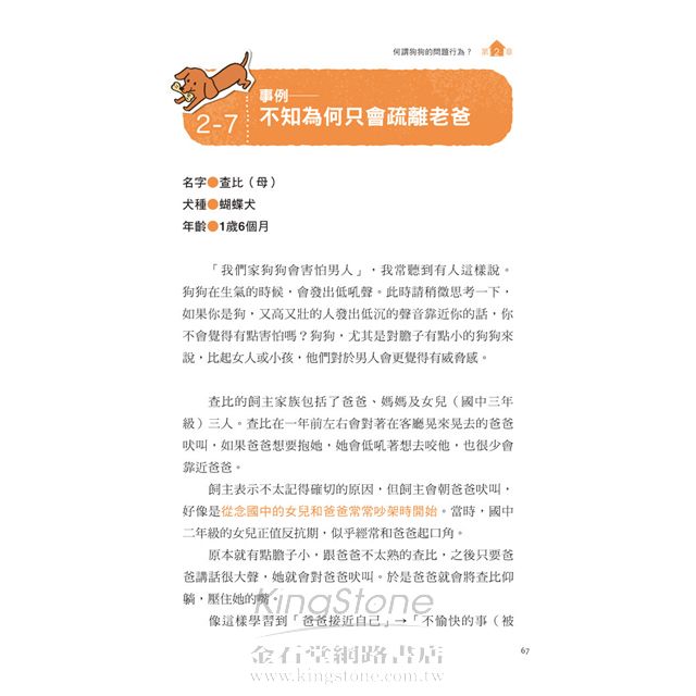 1. 作者用確實的案例來解釋狗狗問題行為的成因與處理方式,讓讀者能跟家中的狗狗作比較