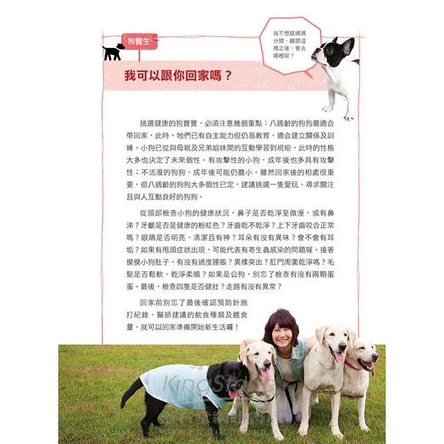 ◎四大面向可愛逗趣的Q&A,包含了狗狗食衣住行育樂等各方面的知識解答,幫助狗主人快速、簡單了解愛犬。
