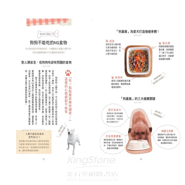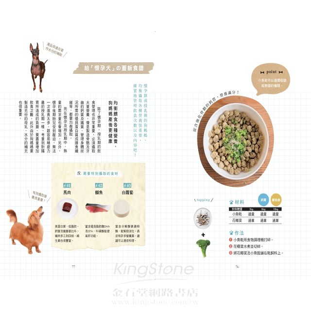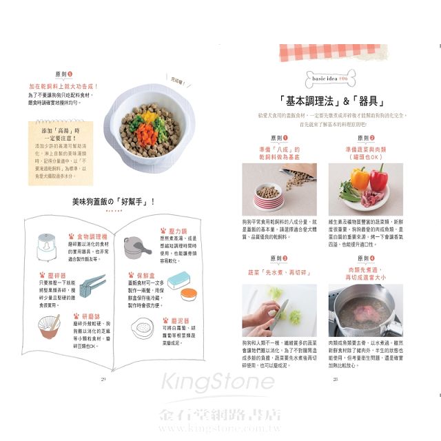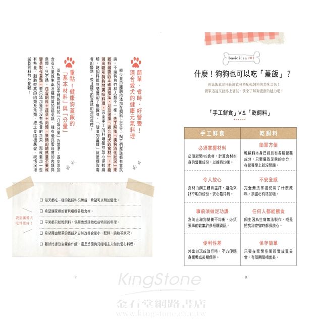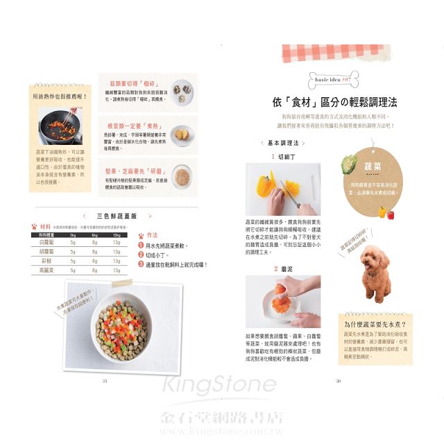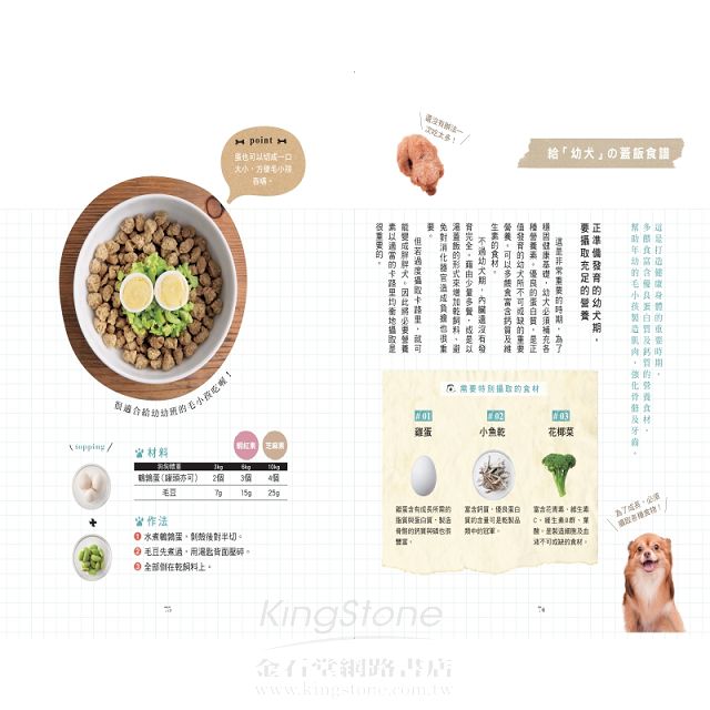 「哇!原來狗狗也可以這樣吃啊!」如果不忍心狗狗以無辜眼神望著餐桌上你吃的食物,再低頭反覆吃著口味千篇一律、乾巴巴的「飼料」,又覺得動手做「鮮食」太費時、門檻太高,「狗蓋飯」是你的另一種全新選擇。為了家中寶貝的毛小孩,快來嘗試看看吧!(文/采實文化編輯)