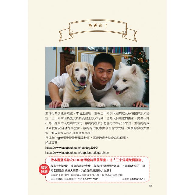 1.匯集狗狗界各領域頂尖專業人士的知識及分享,狗狗行為師熊爸、狗狗營養師DR.ELLIE、狗狗中醫師郭文賢、狗狗美容我們好好團隊,全方位介紹,讓你完全解析狗狗幸福密碼!