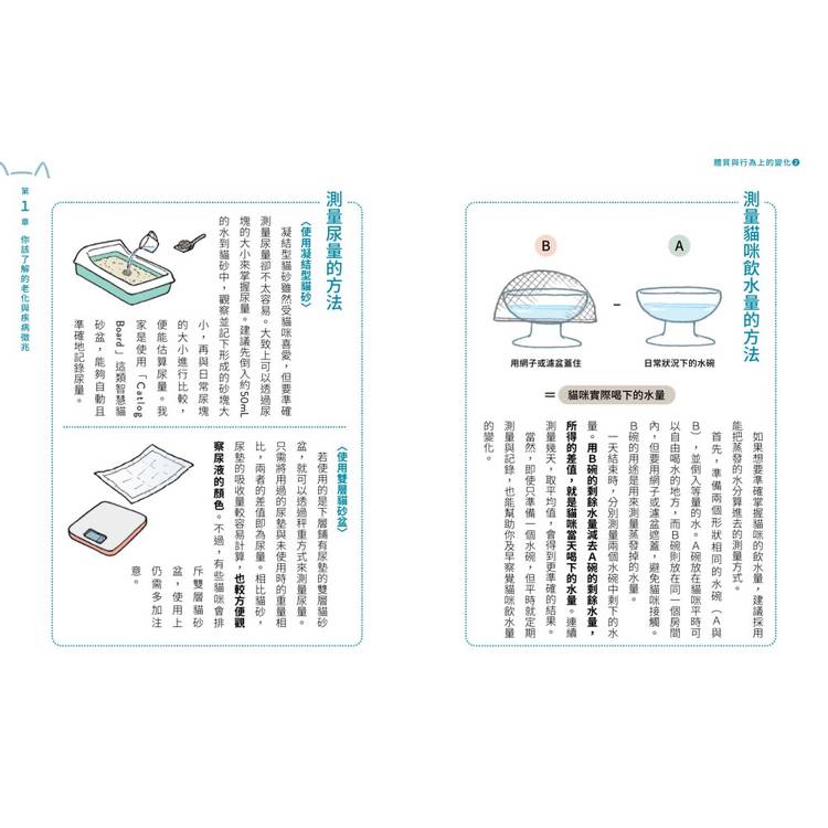 1 飲食上的小巧思:為高齡貓挑選合適的飼料/功效強大但需特別留意的處方飼料/提升進食意願的小秘訣/貓咪不願進食時的照護餐/讓貓咪多喝水的小撇步