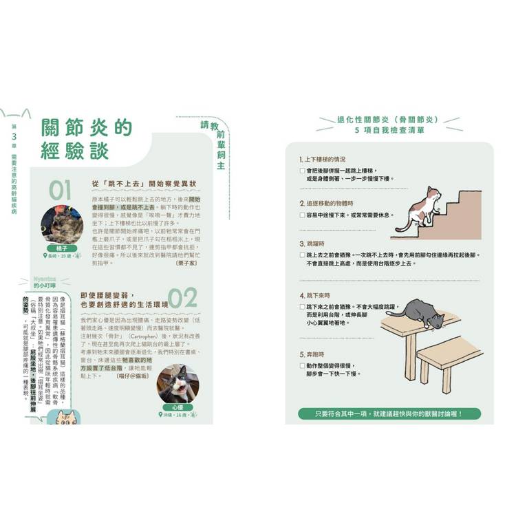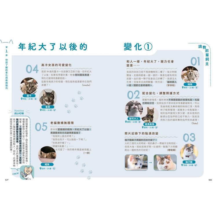 過去也有不少獸醫師寫過如何陪伴老貓生活的書籍,但這本書不一樣,它結合了專業獸醫的知識,以及飼主們的實際經驗與生活智慧,是一本獨具特色的作品。