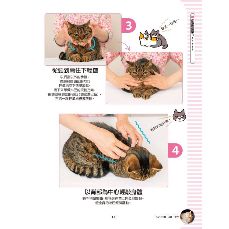 ◎真實照片說明簡單易學:每天按摩只需幾分鐘,貓奴再忙都可以隨手翻書幫主子馬一下