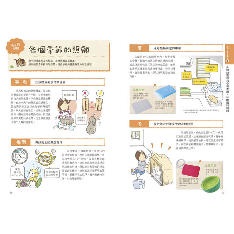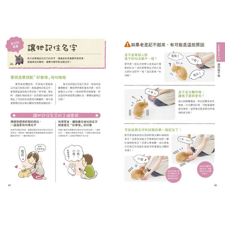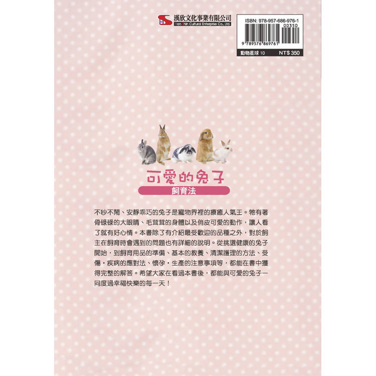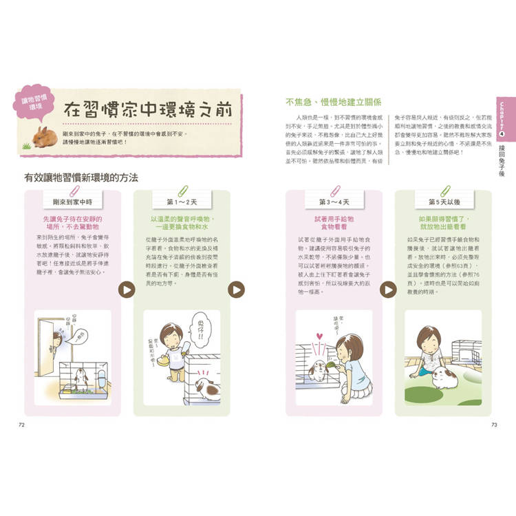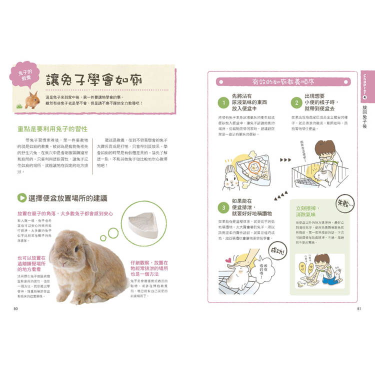 本書除了介紹最受歡迎的品種,對於飼育時會遇到的問題也有詳細說明:從挑選健康的兔子開始,到飼育用品的準備、基本的教養、清潔與護理的方法、受傷或疾病的應對法、懷孕與生產的注意事項等,都能獲得完整的解答。希望大家在看過本書後,都能與可愛的兔子一同度過幸福、快樂的每一天!