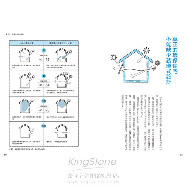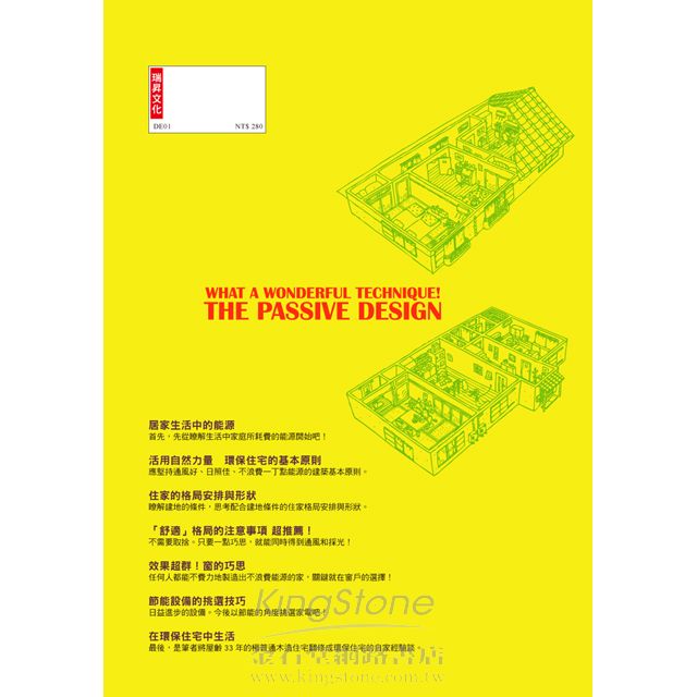 所謂的誘導式設計,是指充分了解太陽和風的性質,藉由巧妙地引入或遮蔽它們並結合在住家設計中,為居住在裡面的人帶來自然力量的「溫暖」「涼爽」「明亮」的設計巧思。書中就以大篇幅介紹這個誘導式設計,讀者一讀本書之後,必會了解它的重要性及方法,將這個設計法加入建造或改建的過程中,設計出好住又環保的家園。