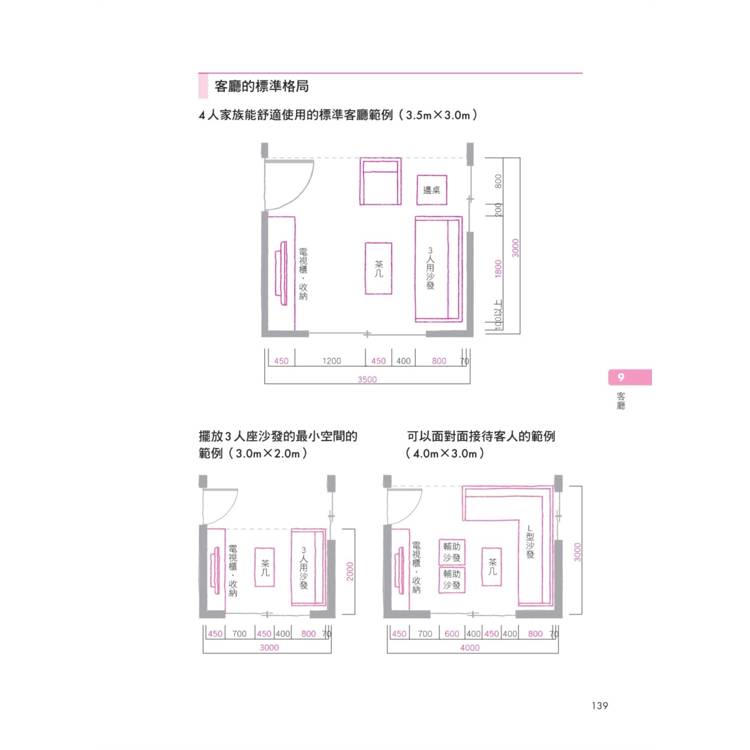 ☆近300張空間尺寸表、標準格局配置圖、○×範例圖