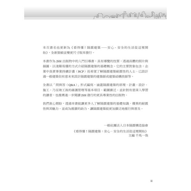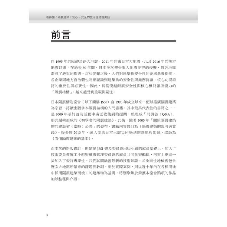 本書系統性涵蓋隔震結構構件基礎知識、隔震結構設計以及隔震層施工、維護的實用知識,使初學者也能充分理解隔震結構。