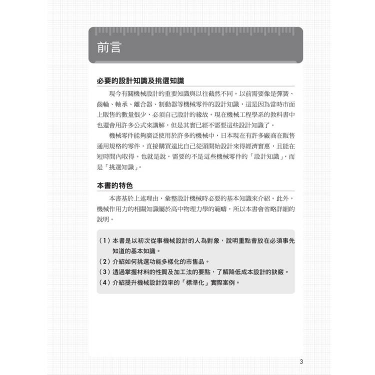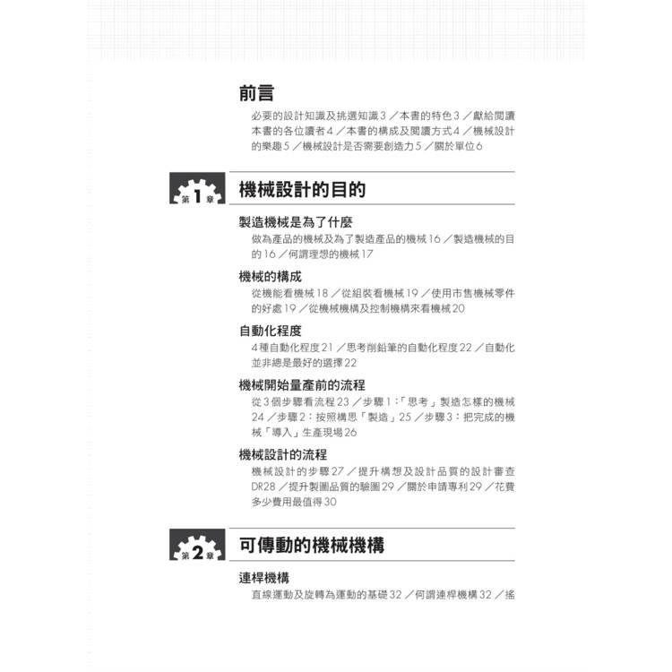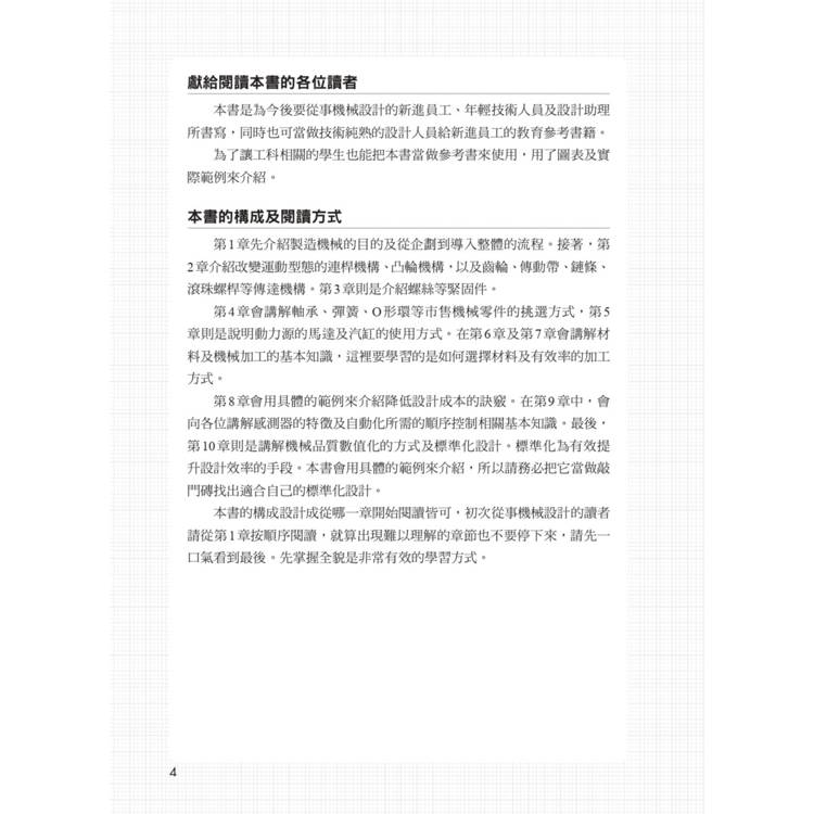 必要的設計知識及挑選知識/本書的特色/獻給閱讀本書的各位讀者/本書的構成及閱讀方式/機械設計的樂趣/機械設計是否需要創造力/關於單位