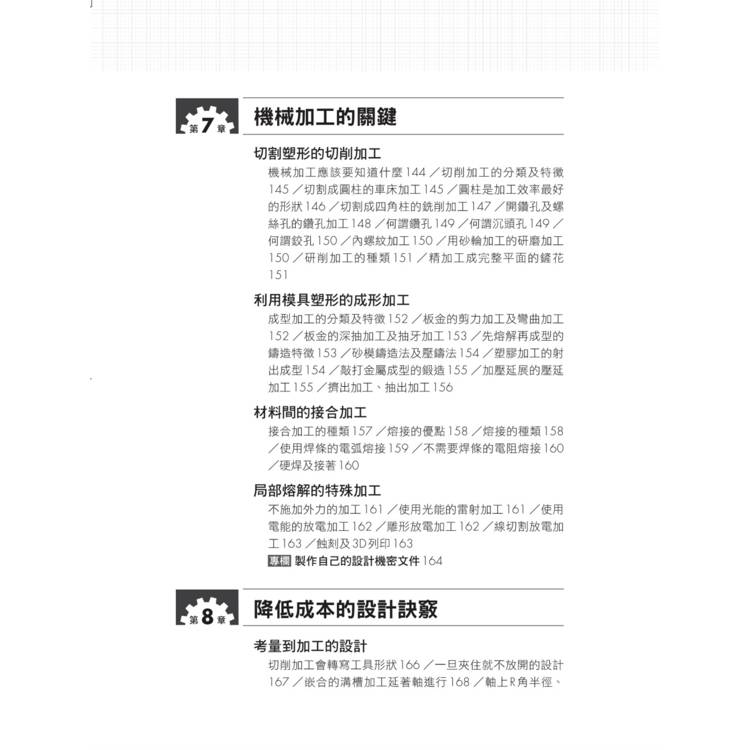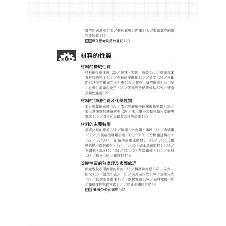 .掌握材料特性與加工訣竅:包括材料的機械性質、物理性質、化學性質等三大特性;切削加工、成形加工、接合加工、特殊加工、熱處理及表面處理等五大訣竅