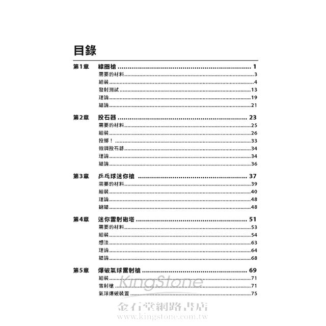 書中的每一個專題都包含了零件清單與建置步驟,並搭配許多的電路圖與照片。在每個專題的後半段都有「理論」單元,讓你能了解專題如何運作與它的背景資訊。所以,儘管你才剛接觸實作專題,不妨選個簡單的專題下手,久而久之,你就會更有信心去挑戰難度更高的專題。