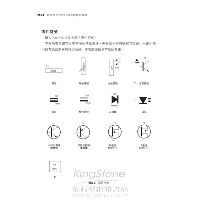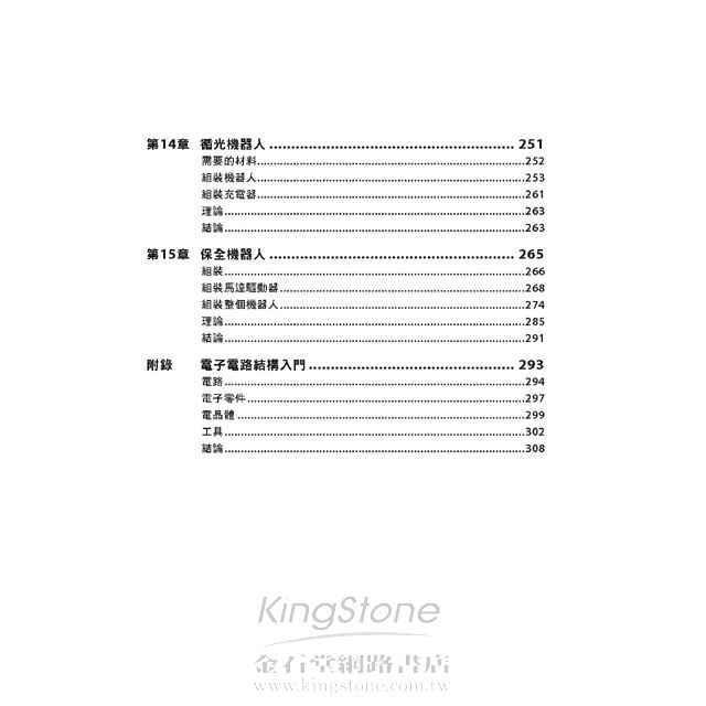 本書附錄包含了電子元件架構的基礎,如果你對於電子元件不太熟悉,建議在你開始進行任一個會使用到電子元件的專題前,先閱讀附錄以獲得有用的資訊。