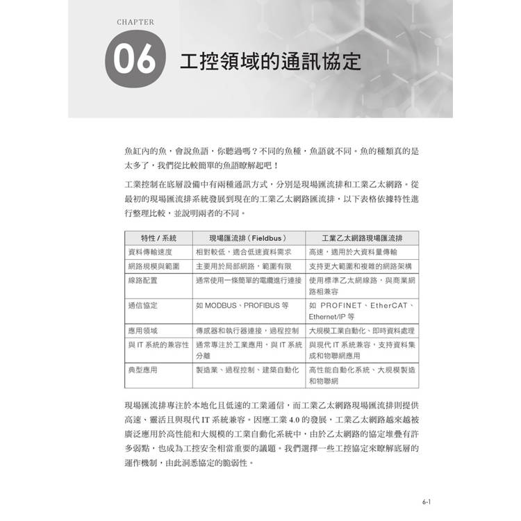 本書專注於工業控制系統安全,內容涵蓋操作技術(Operational Technology, OT)的多個方面。OT是工業控制系統的核心,包括 ICS(工業控制系統)、PLC(可編程邏輯控制器)、DCS(分散式控制系統)、HMI(人機介面)與 SCADA(監控與資料收集系統)等眾多元素。本書從煉化廠的製程視角,探討工控系統的底層協定,並將場域模擬成靶機,利用 Python 程式進行靶機攻擊,進而反思藍軍的防禦概念。