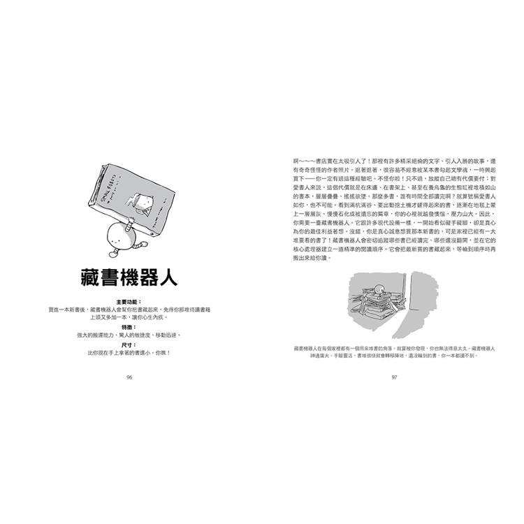 本書精選100個最受喜愛的善良小機器人,全數出自作者原創的構想。書中深入探討了這些奇妙、但經常讓人感到會心一笑的機器人們的功能、特徵、尺寸和背景故事。