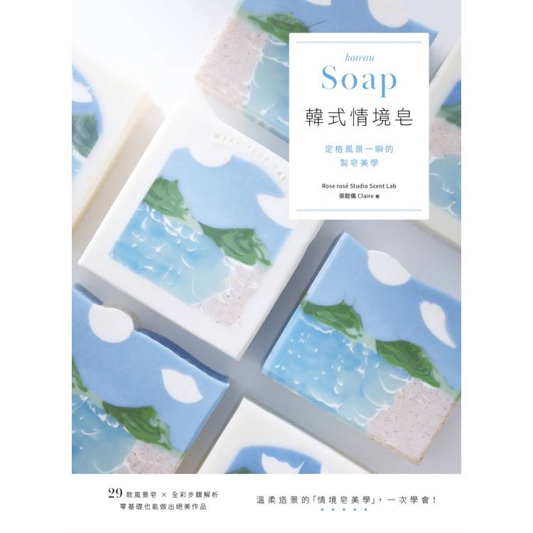 全書收錄29款手工皂配方,從溫和親膚的家用皂開始練習,慢慢進階到畫面感十足的風景皂,無論你是想完成一塊好洗、耐用的肥皂,或嘗試為肥皂加入圖像設計,跟著書中清楚的操作步驟,就能循序漸進地完成。