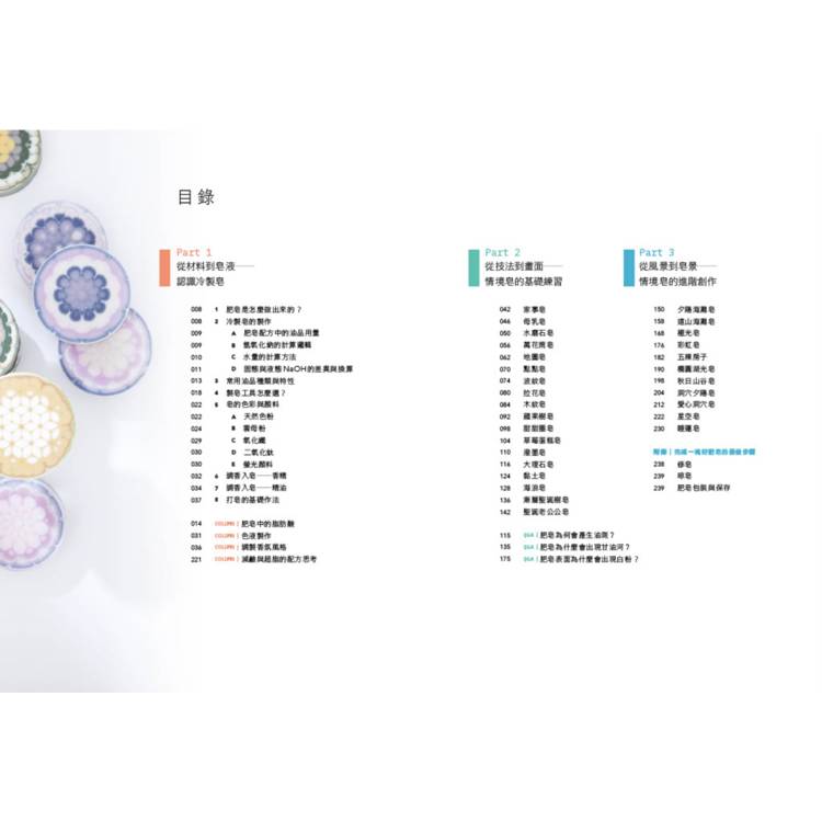 這不只是一本教你「怎麼做」的製皂書,更希望在實用的製皂過程中,融入美感與創意,陪你度過一段療癒而專注的創作時光。讓手工皂,成為生活裡一塊溫柔而踏實的風景。